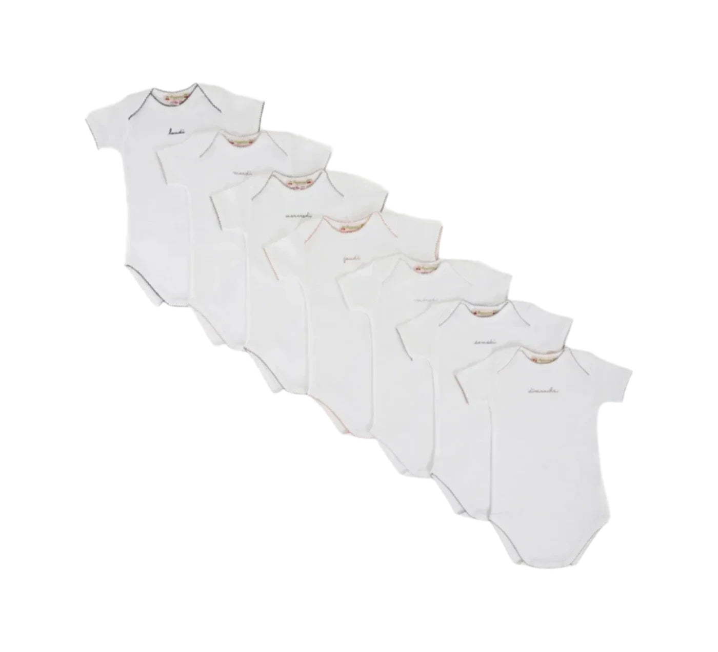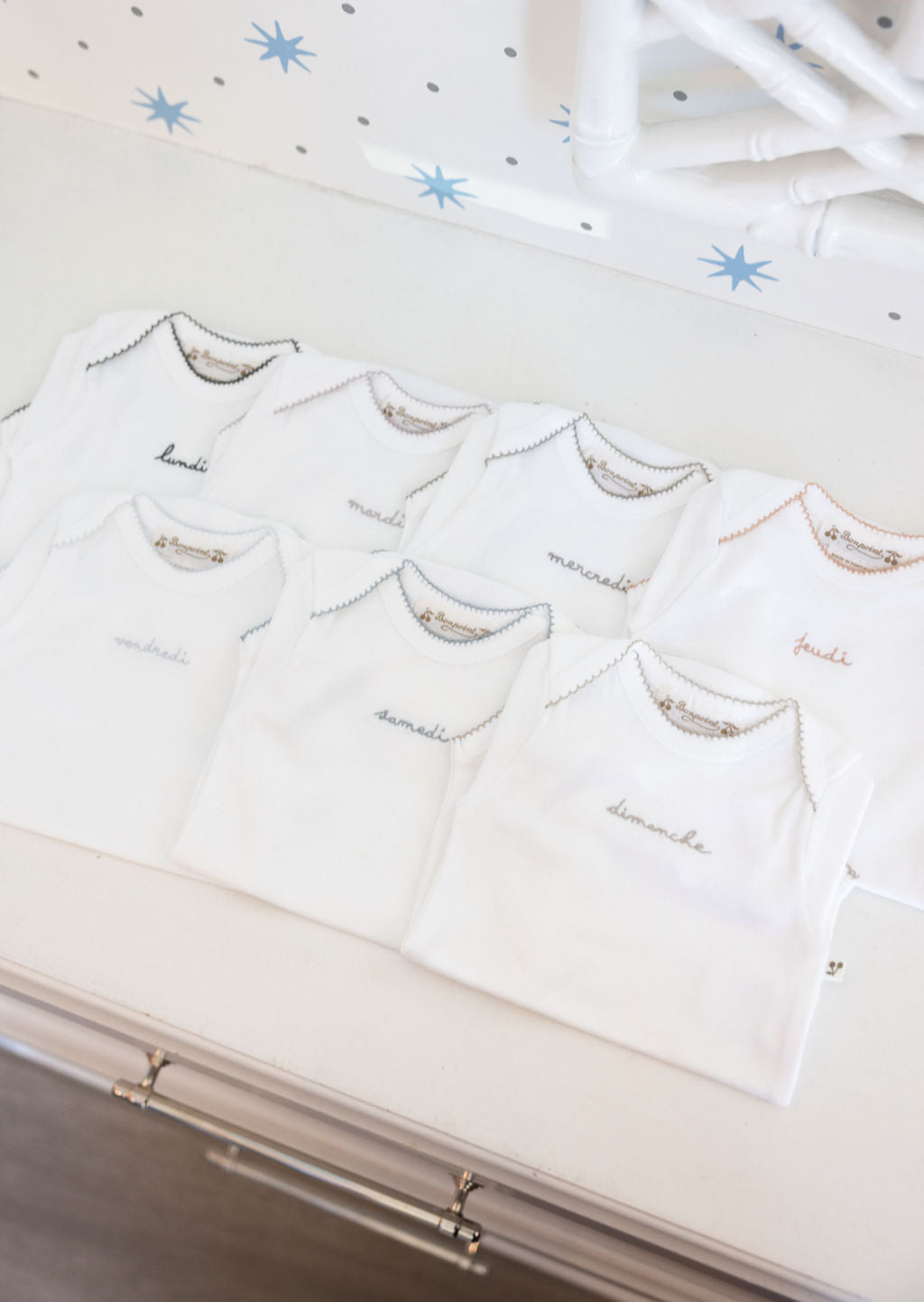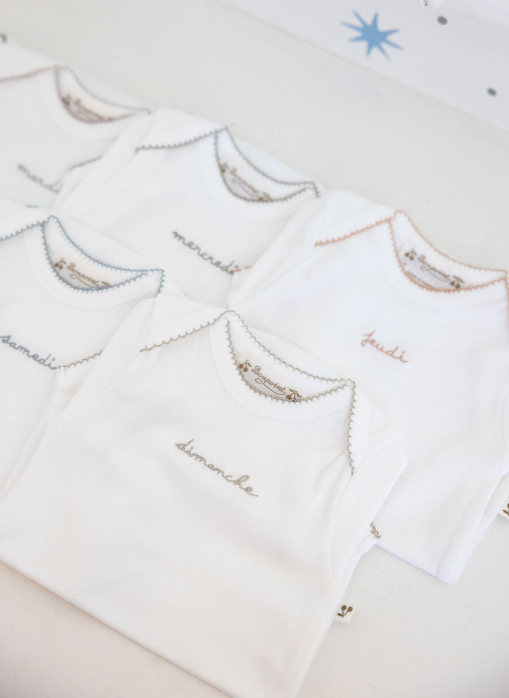 Keep baby warm every day of the week with this set of soft cotton onesies, a Bonpoint essential. Each one is embroidered in a different color.