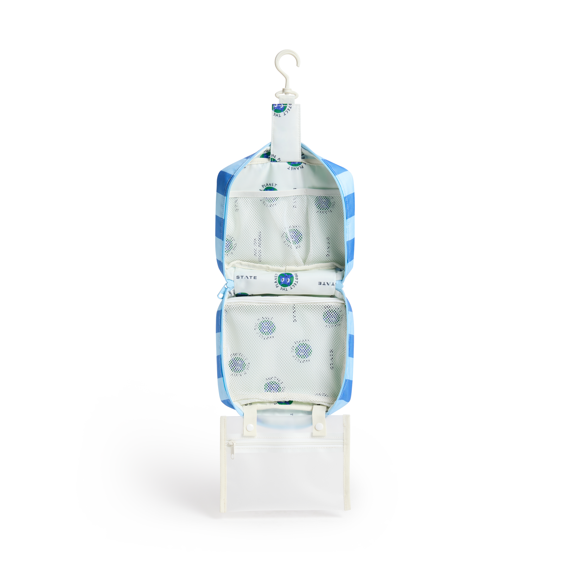 Our award winning, collapsible hanging toiletry kit thoughtfully designed with a place for every item you need.