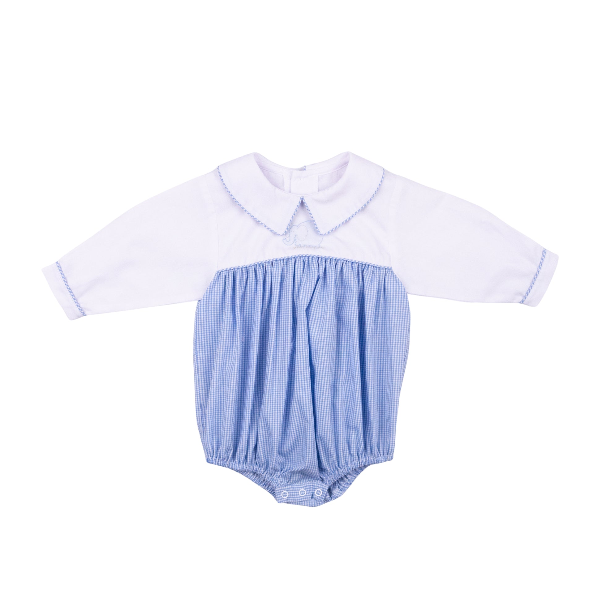 Blue Check Bubble with Embroidered Elephant made by Auraluz.