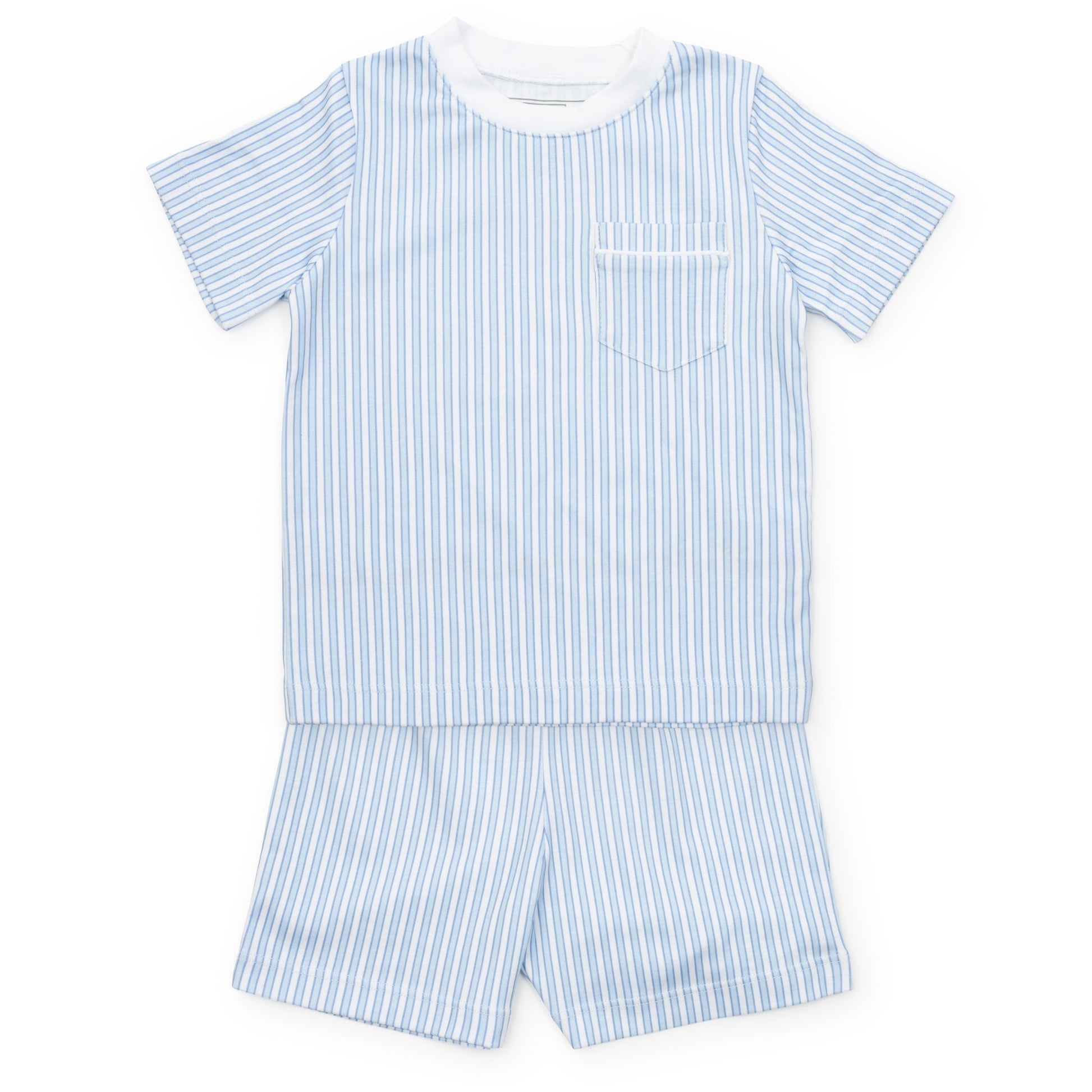 Pima cotton boys' pocket t-shirt and matching play shorts. Made from 100% Peruvian Pima Cotton. This item is not intended for sleepwear.