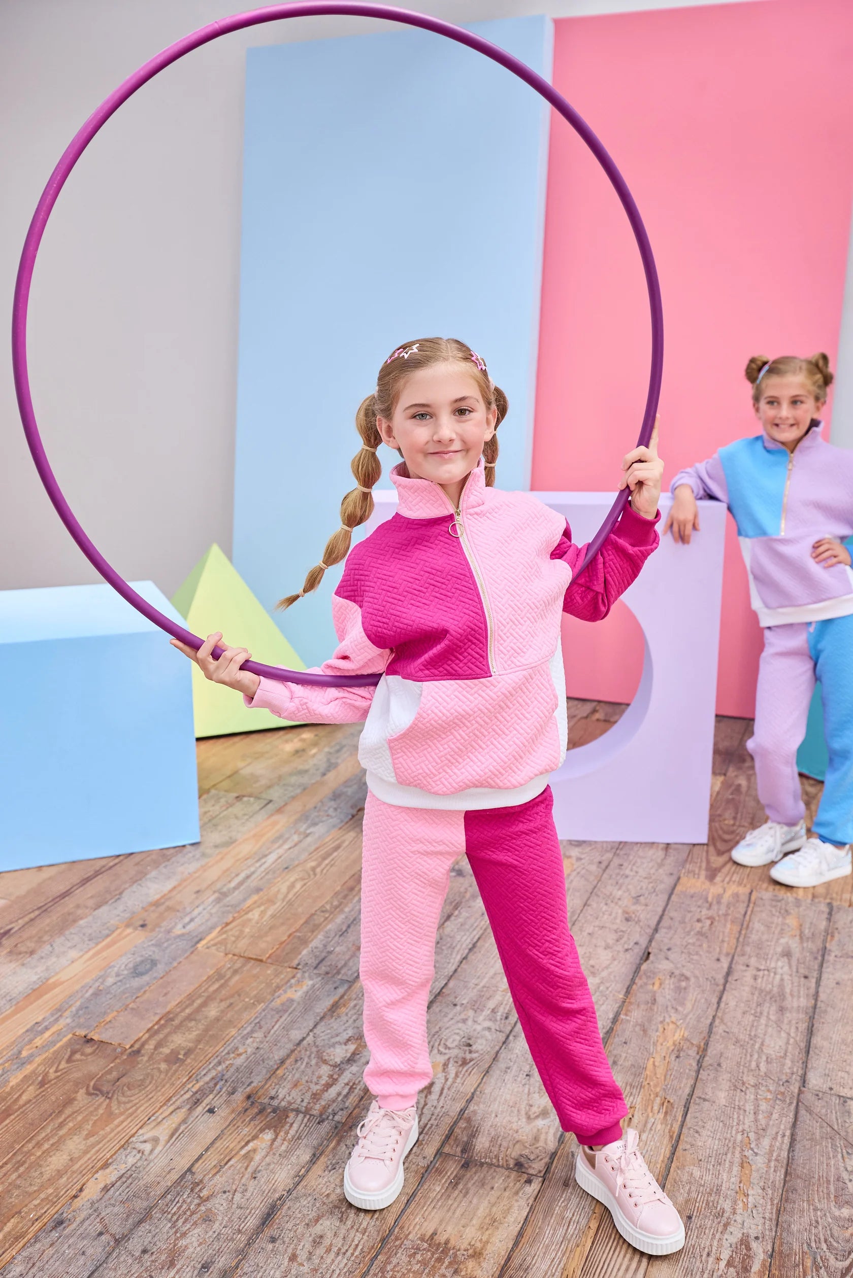 Pink and Cranberry Quilted Trellis Color Block Pullover made by Bisby