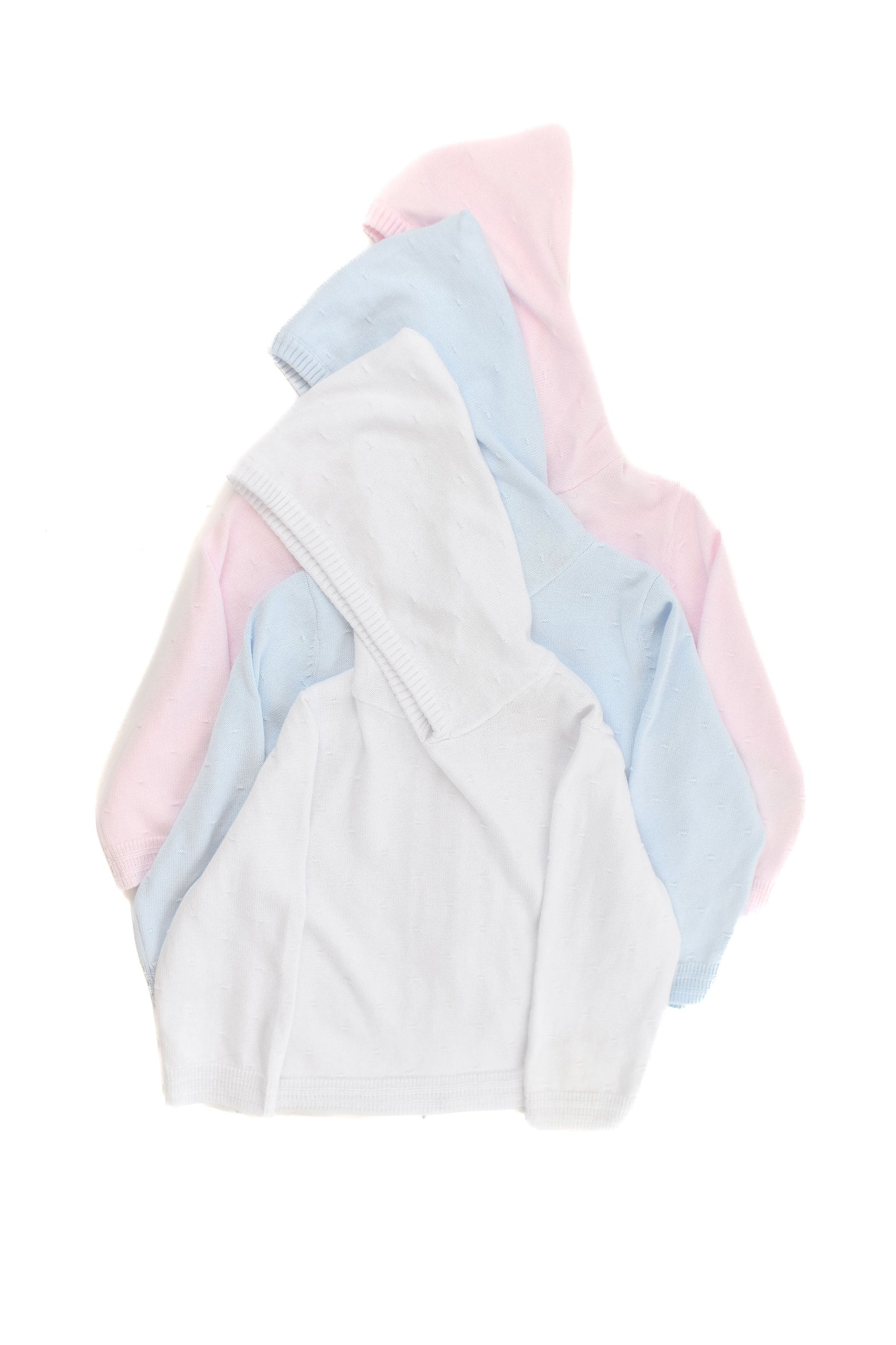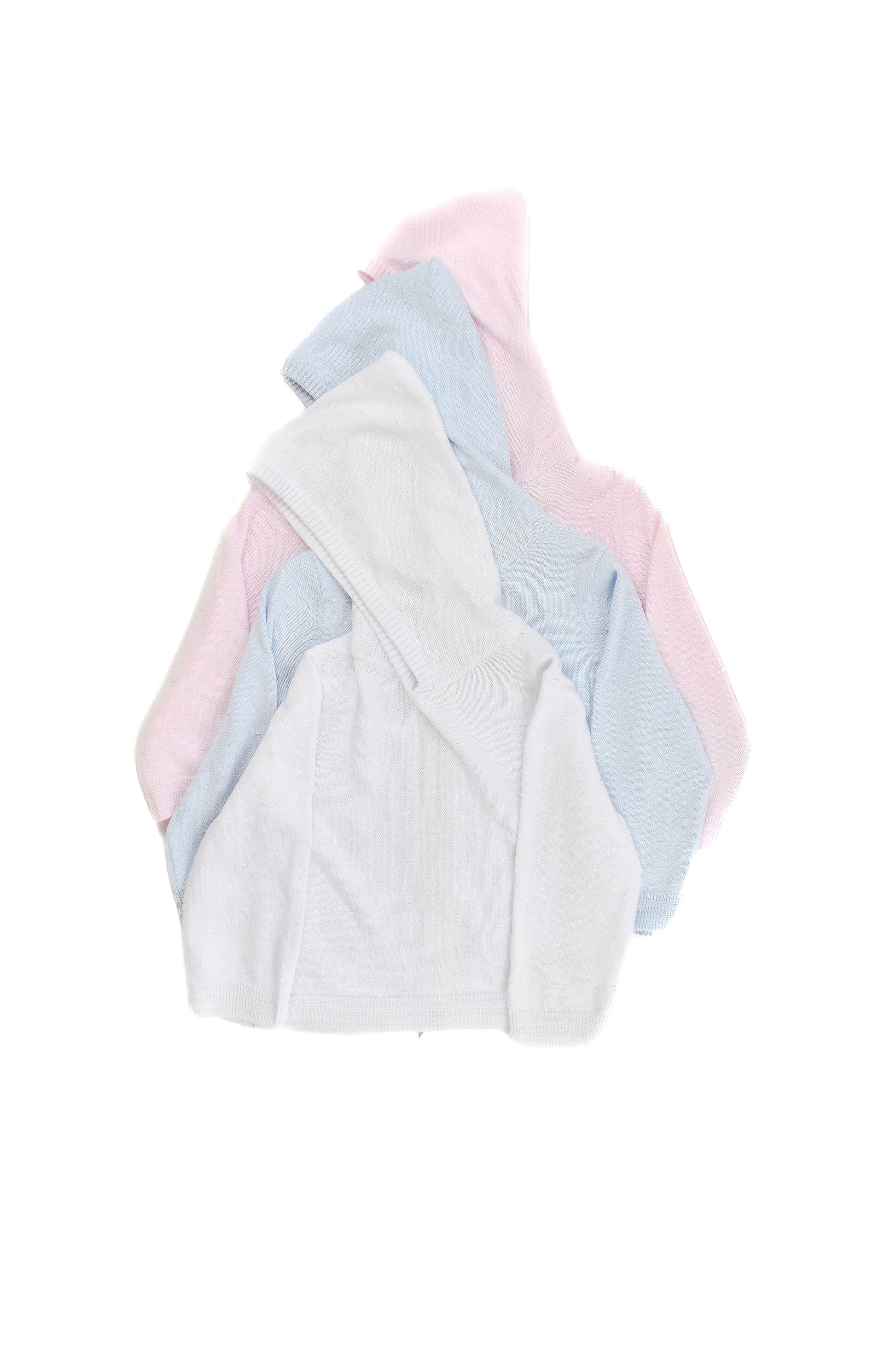 Cotton Hooded Pullover with a zipper in the back made by Petit Ami.