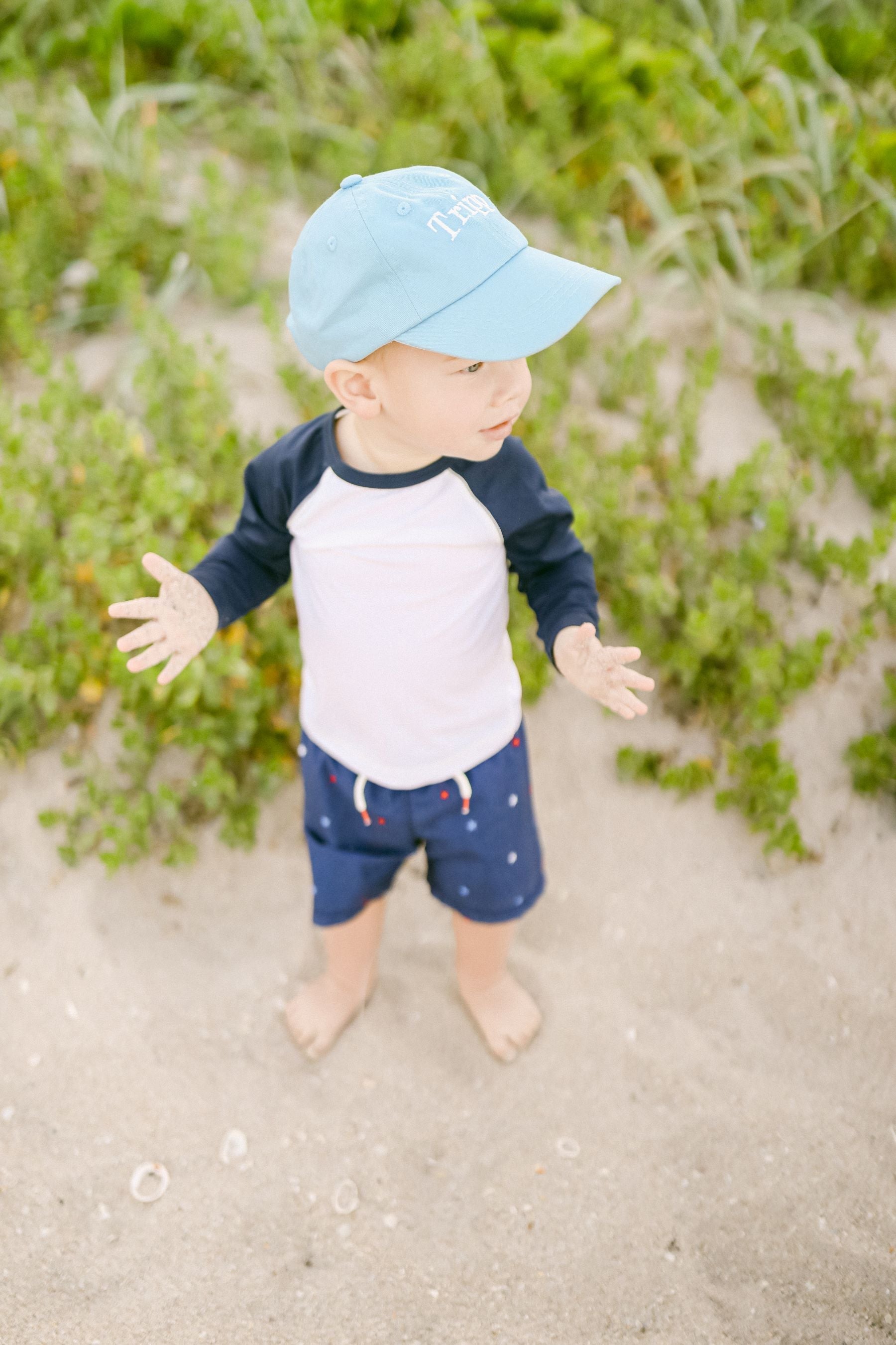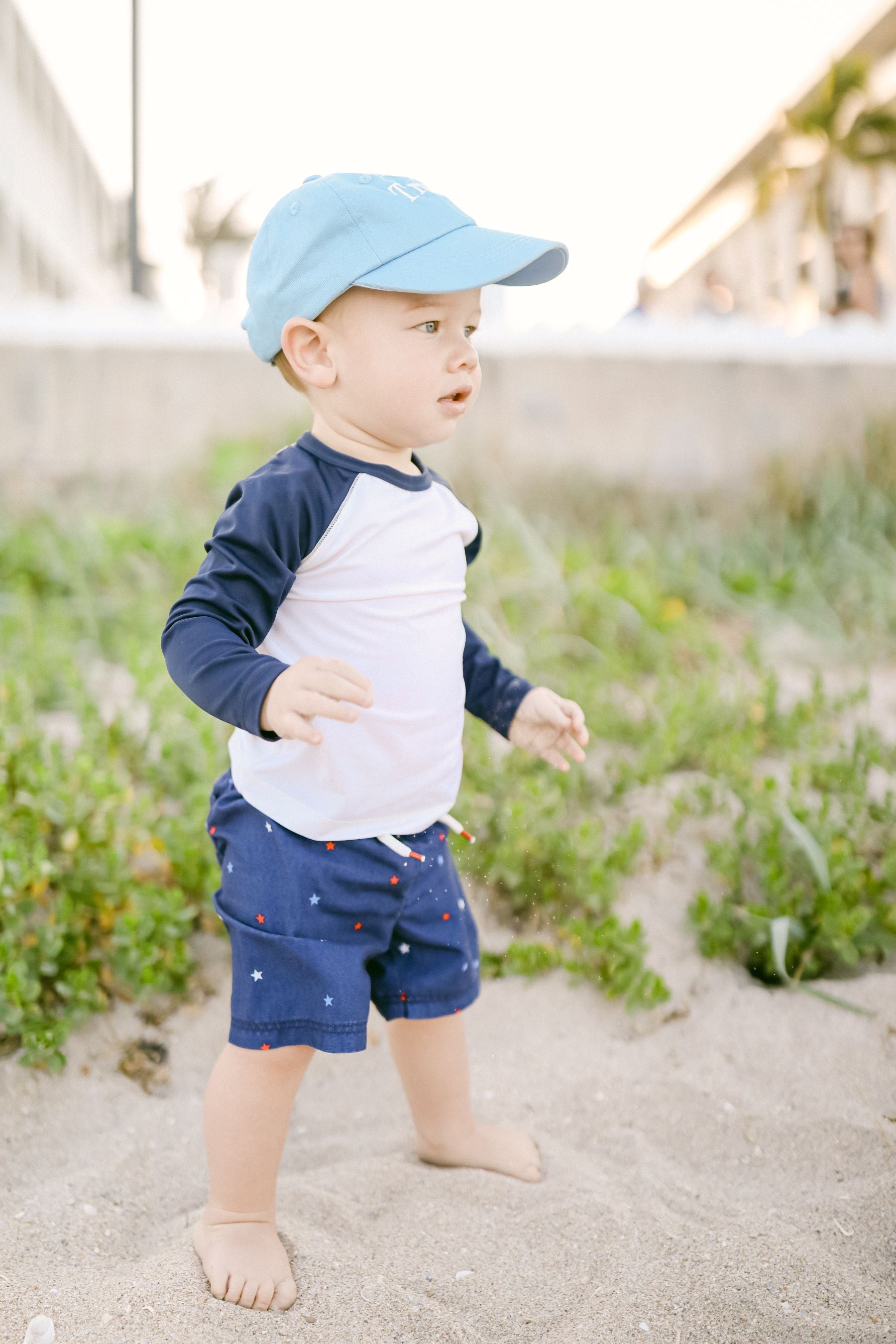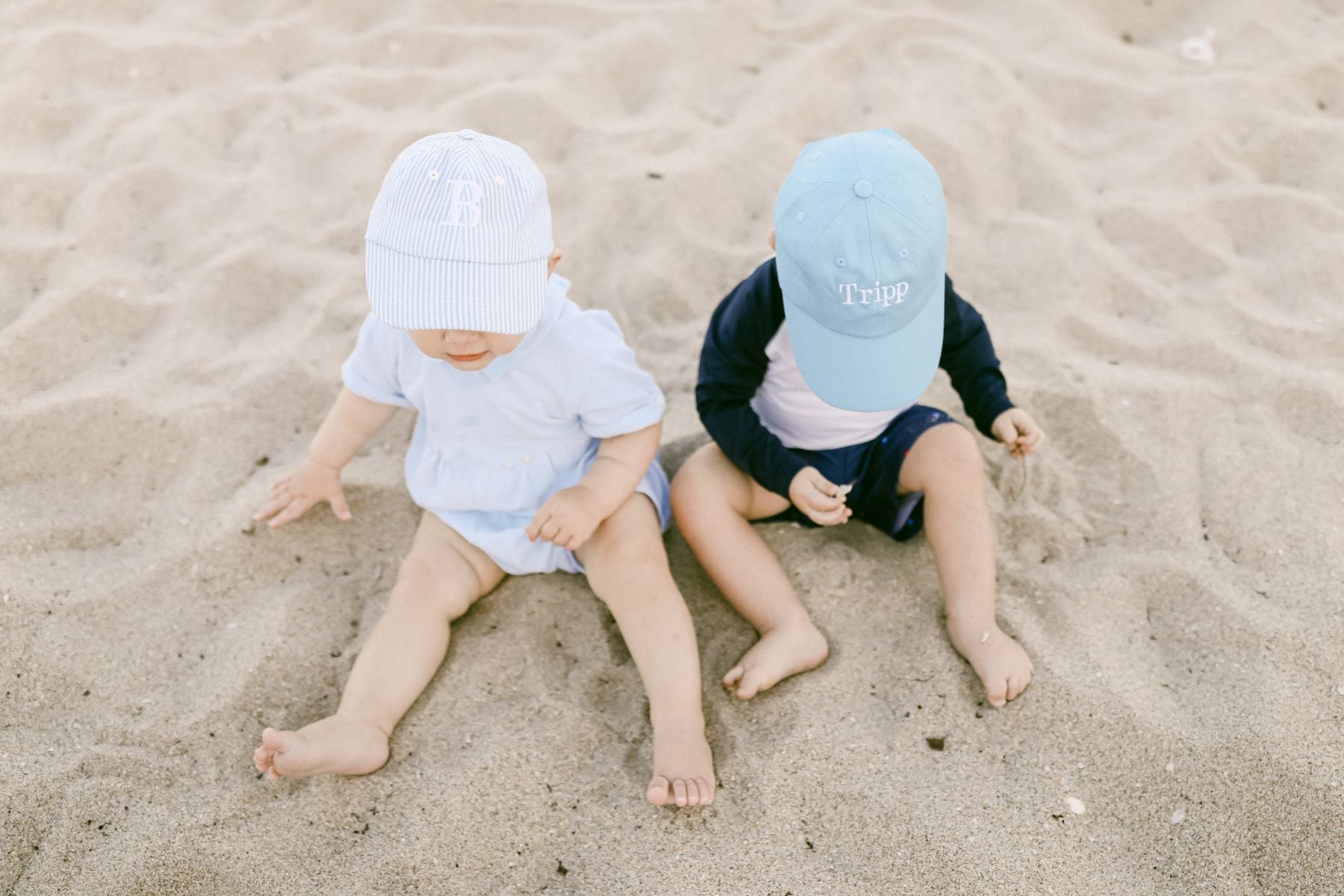 Protect your little one’s precious skin with our perfectly personalizable Birdie Blue Baby Baseball Hat. Whether he is strolling along the sidewalk or spending time in the sand, this soft, structured style is a sweet way to celebrate those brand new initials and start to show off his signature style. With infinite choices from our Monogram Menu and sized to grow with him throughout those early years, it’s an adorable, functional addition sure to turn moments into memories while shielding little eyes from the sun. Makes the perfect baby gift! Featuring a traditional six-panel fitted construction and an adjustable tuck-strap closure, each hat is sized to fit babies ages 6-24 months.