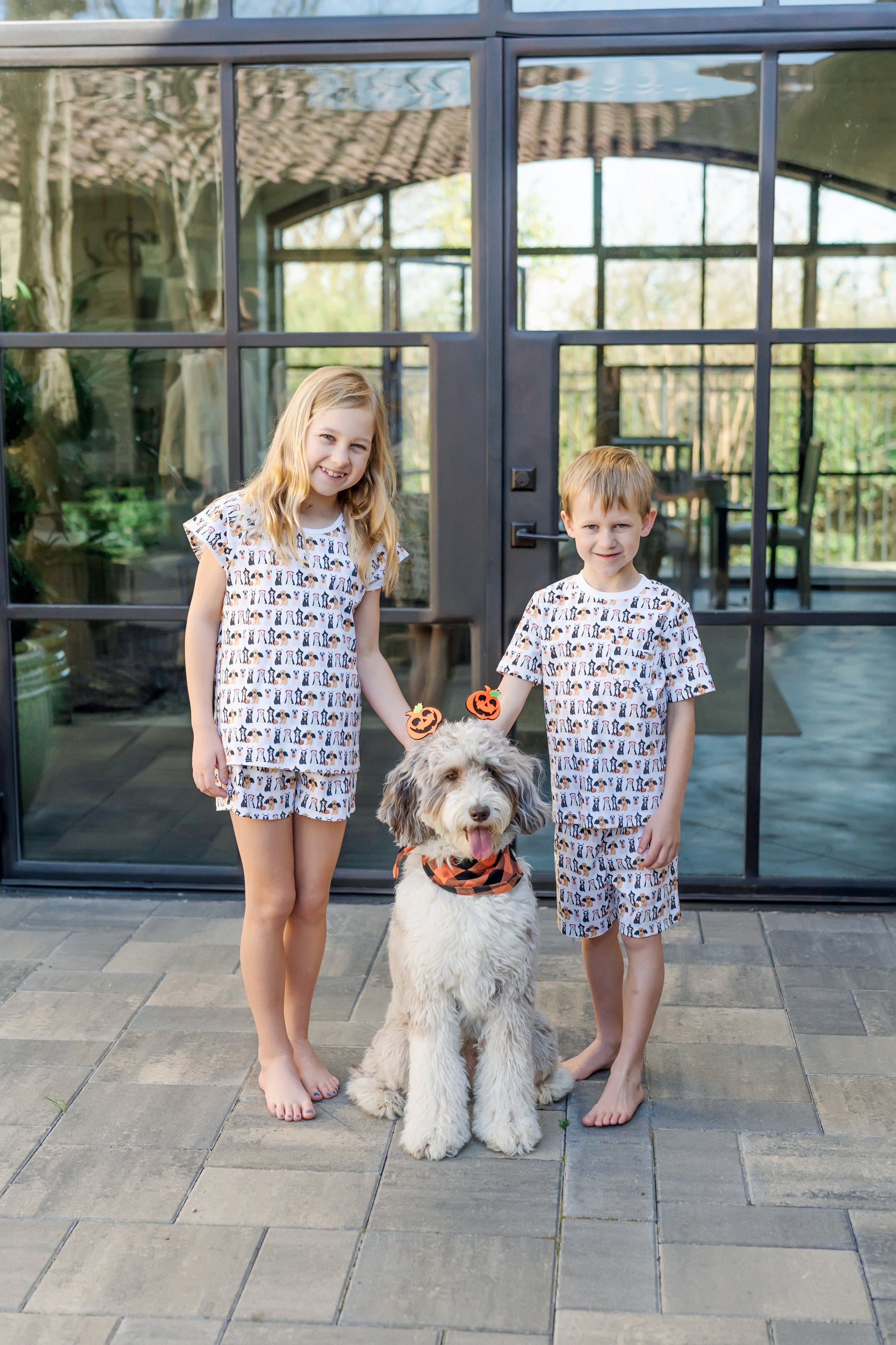 Pima cotton short cap sleeve top and short set. Top has white piping detail around the neck. Shorts have elastic waistband. Made from 100% Peruvian Pima Cotton. This item is not intended for sleepwear.