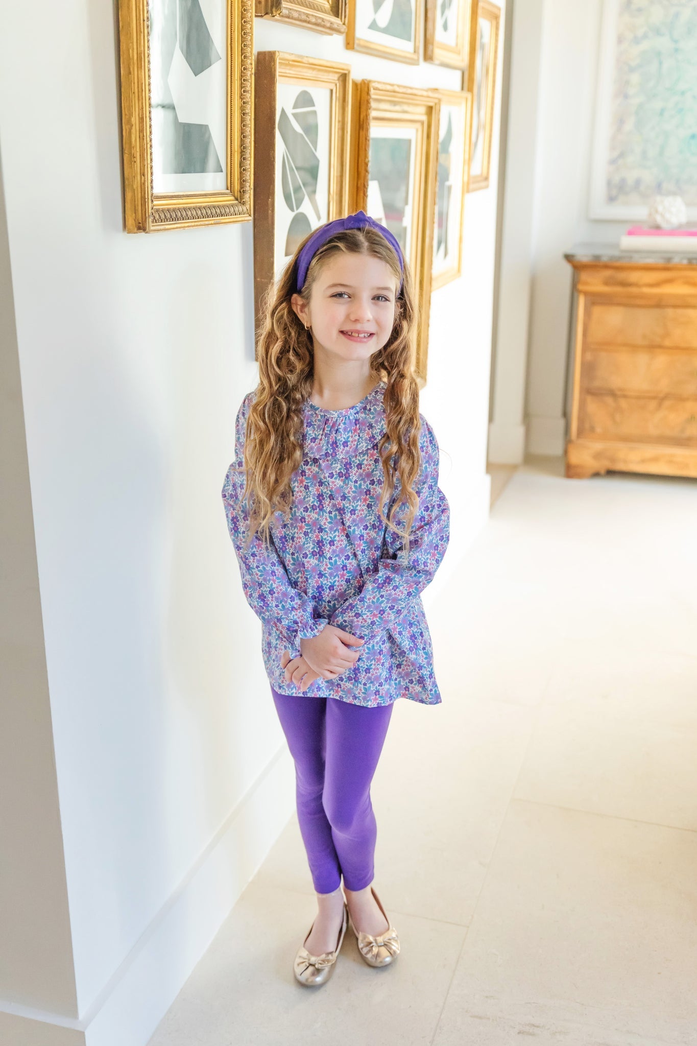 Matching woven pima cotton ruffle neck top with pima/lycra blend leggings. Made from 100% Peruvian Cotton.