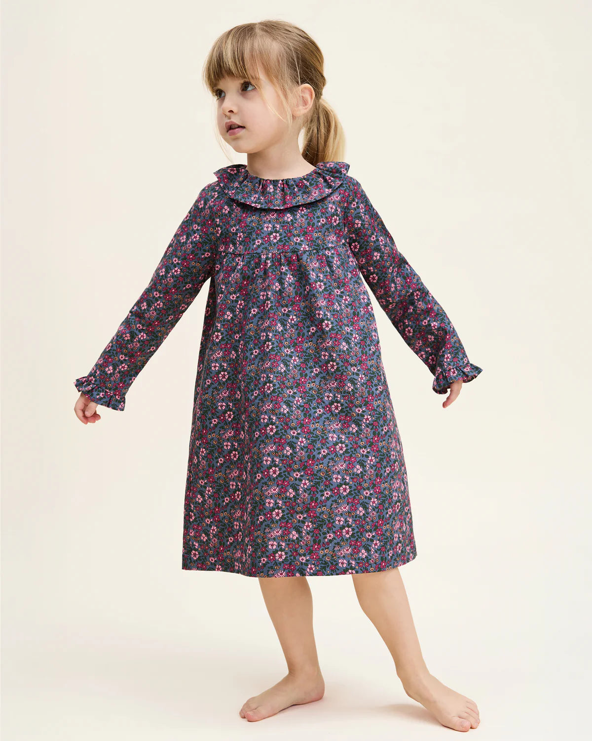 This delightful new take on our beloved Fleurs de Rose print is the perfect dose of fall florals. Rich pink and gold blossoms pop on a slate blue backdrop, all ready for chillier days and nights.