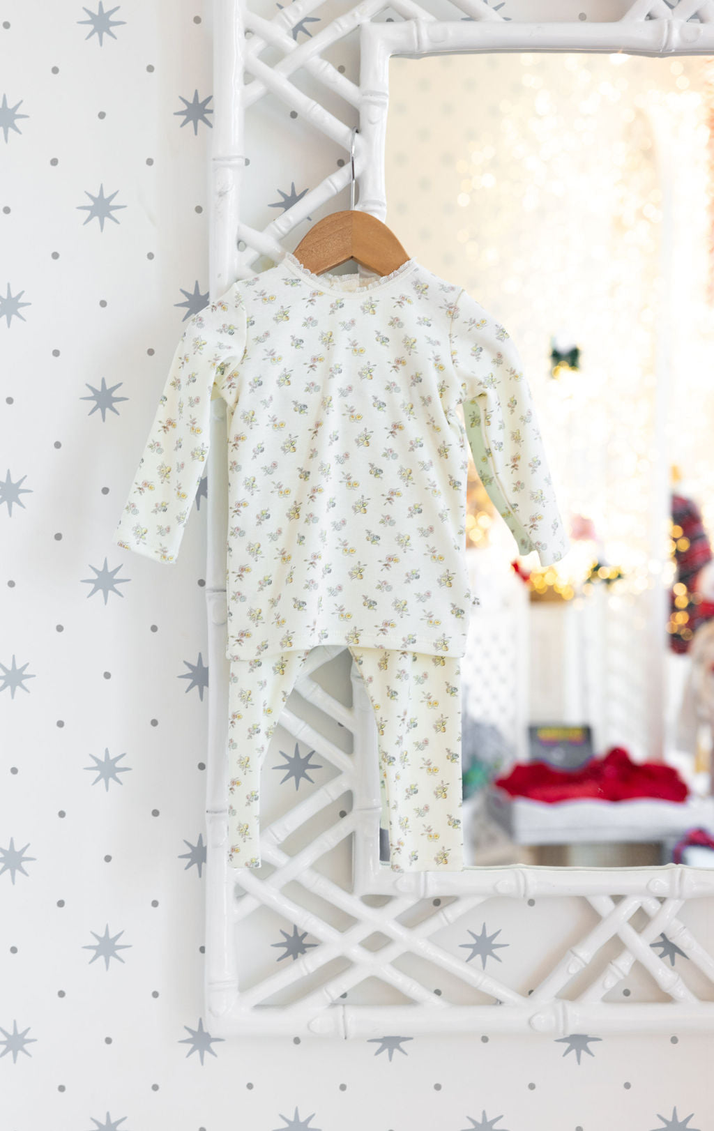 The Genna set for babies offers comfort and style combined. It is made from organic cotton featuring a delightful all-over floral print.