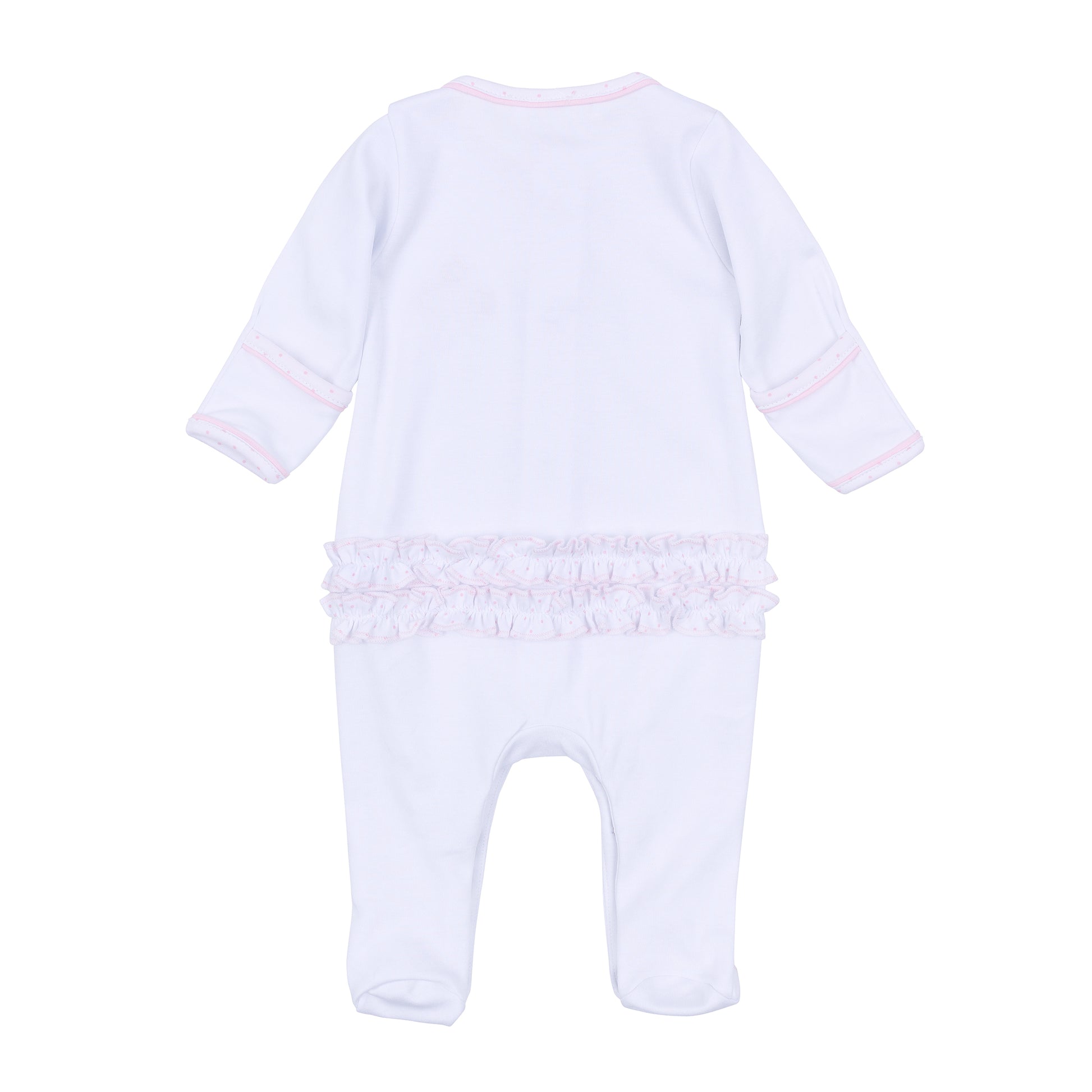 Pink Frosted Wonderland Embroidered Ruffle Footie made by Magnolia Baby.