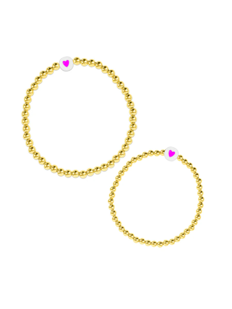 A must for all mommas, this set includes an adult and kids size gold-fill stretch bracelet with an eye-catching heart charm. Every time you glance at your wrist, you’ll be reminded of each other’s love!