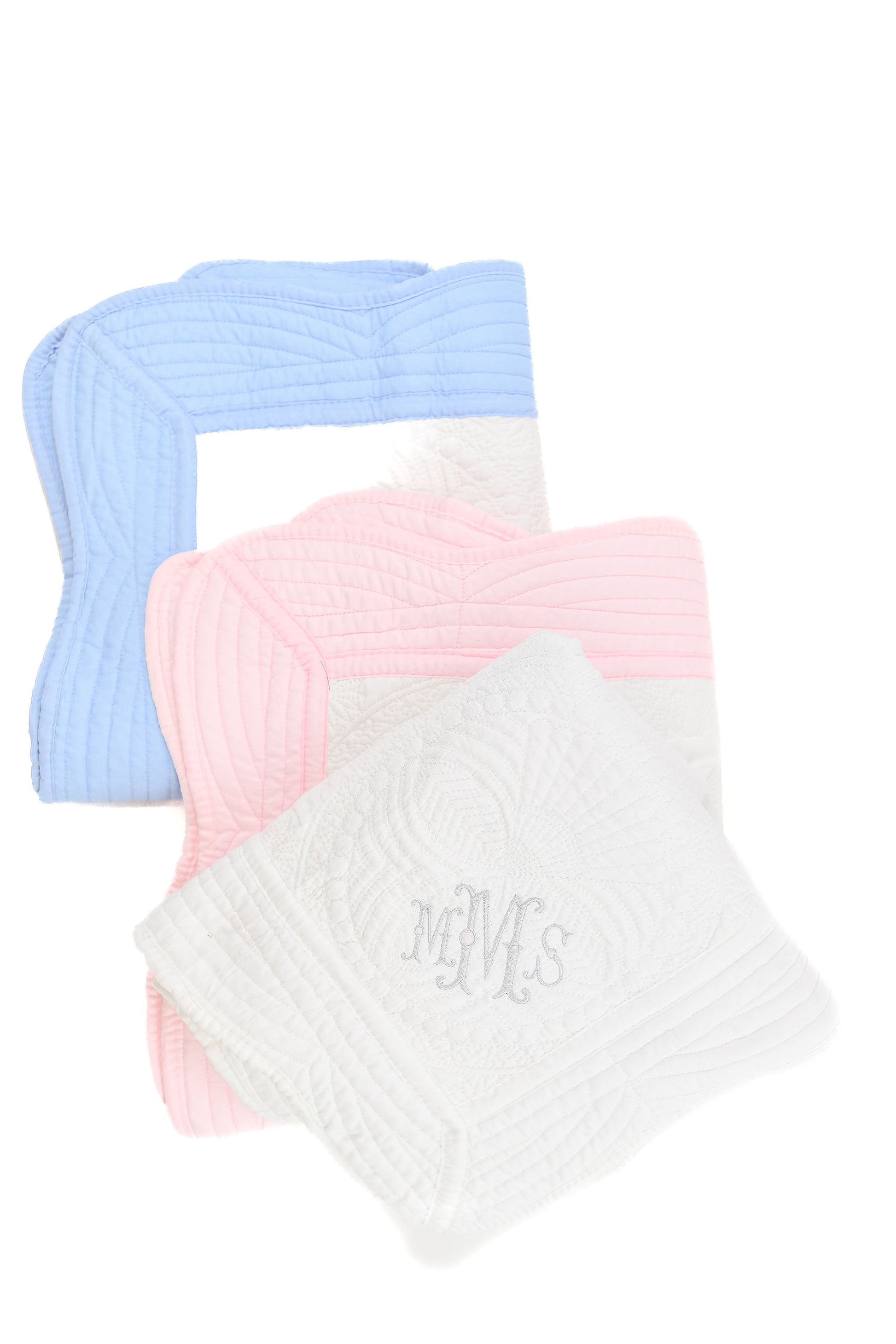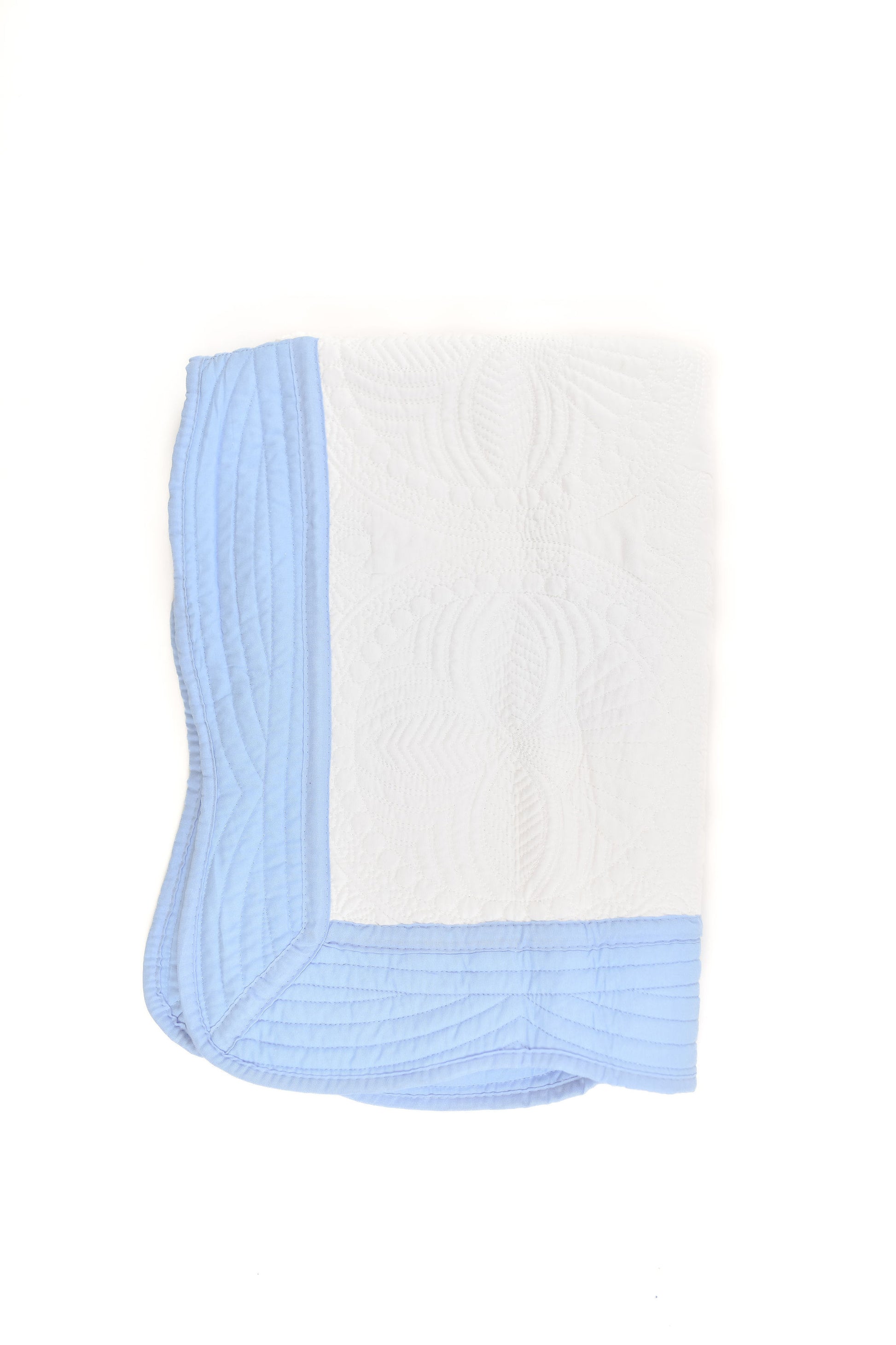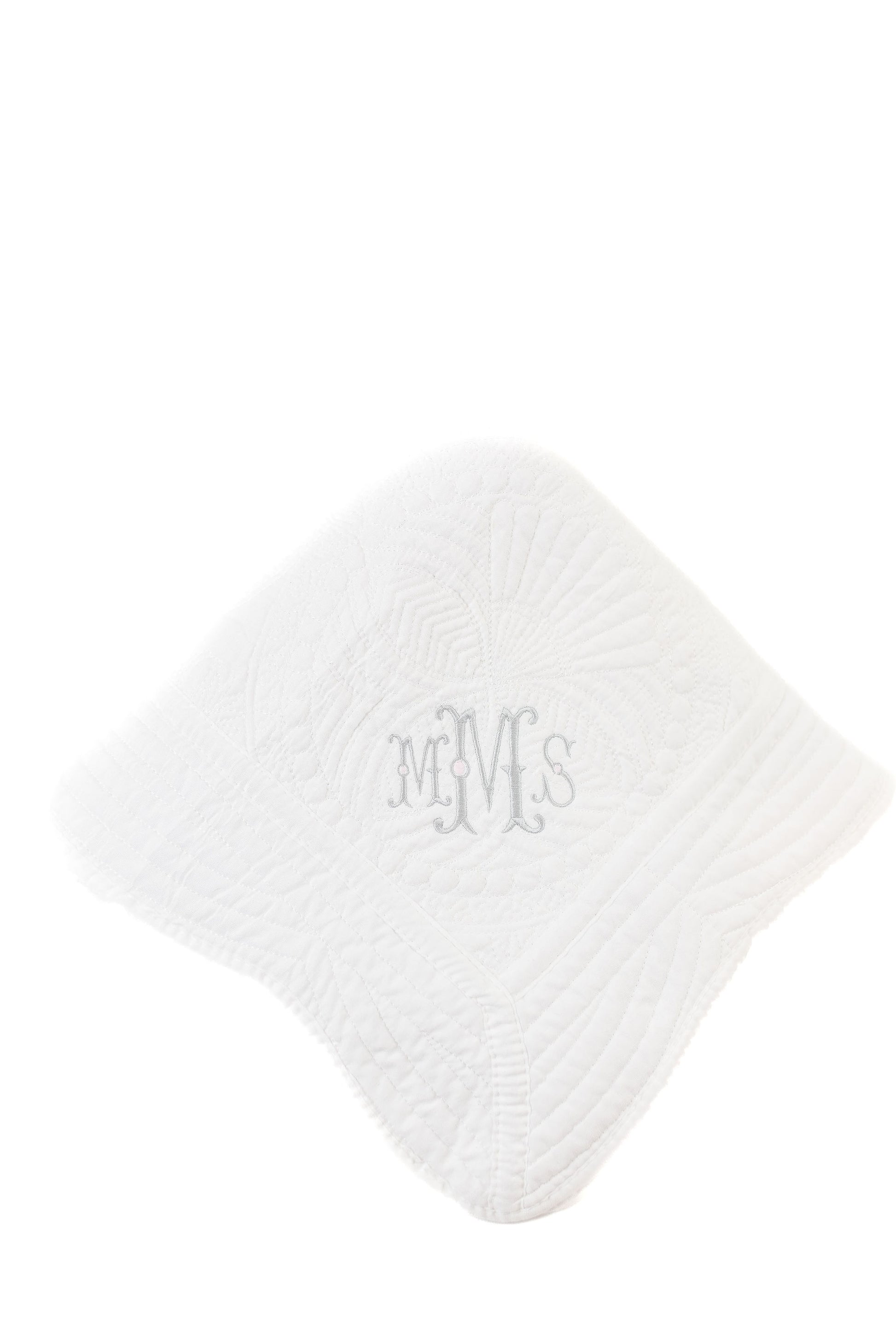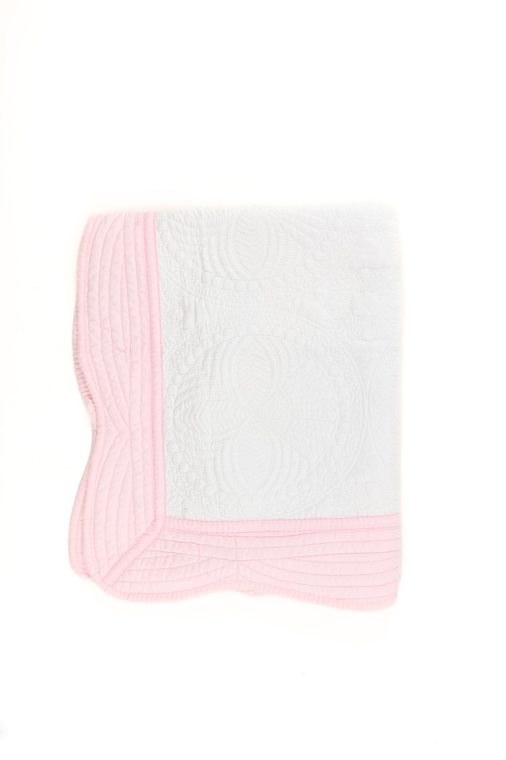 An heirloom quilt with a pretty scalloped edge, perfect for tummy time.