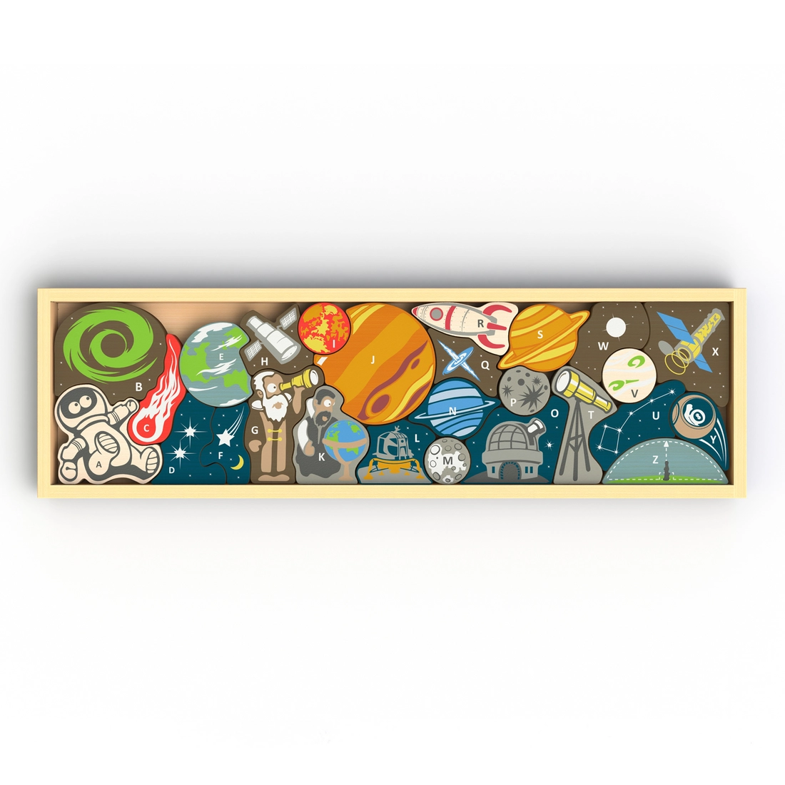 The Space A to Z Puzzle and Playset is an out of this world science adventure. The chunky durable pieces teach the alphabet through space-related objects, from A is for Astronaut Armstrong to Z is for Zenith. Made of rubberwood, this colorful wooden puzzle doubles as a space adventure play set that grows with children as they tell new stories and continue to explore. So grab the telescope, hop in the rocket, and let the learning voyage begin! Intended for ages 3 and up. Based in Fort Collins, Colorado, BeginAgain draws inspiration for our fantastic, wacky and educational toys, games and puzzles from our big and beautiful world! We design toys that satisfy all styles of children’s playing, with no batteries required.
