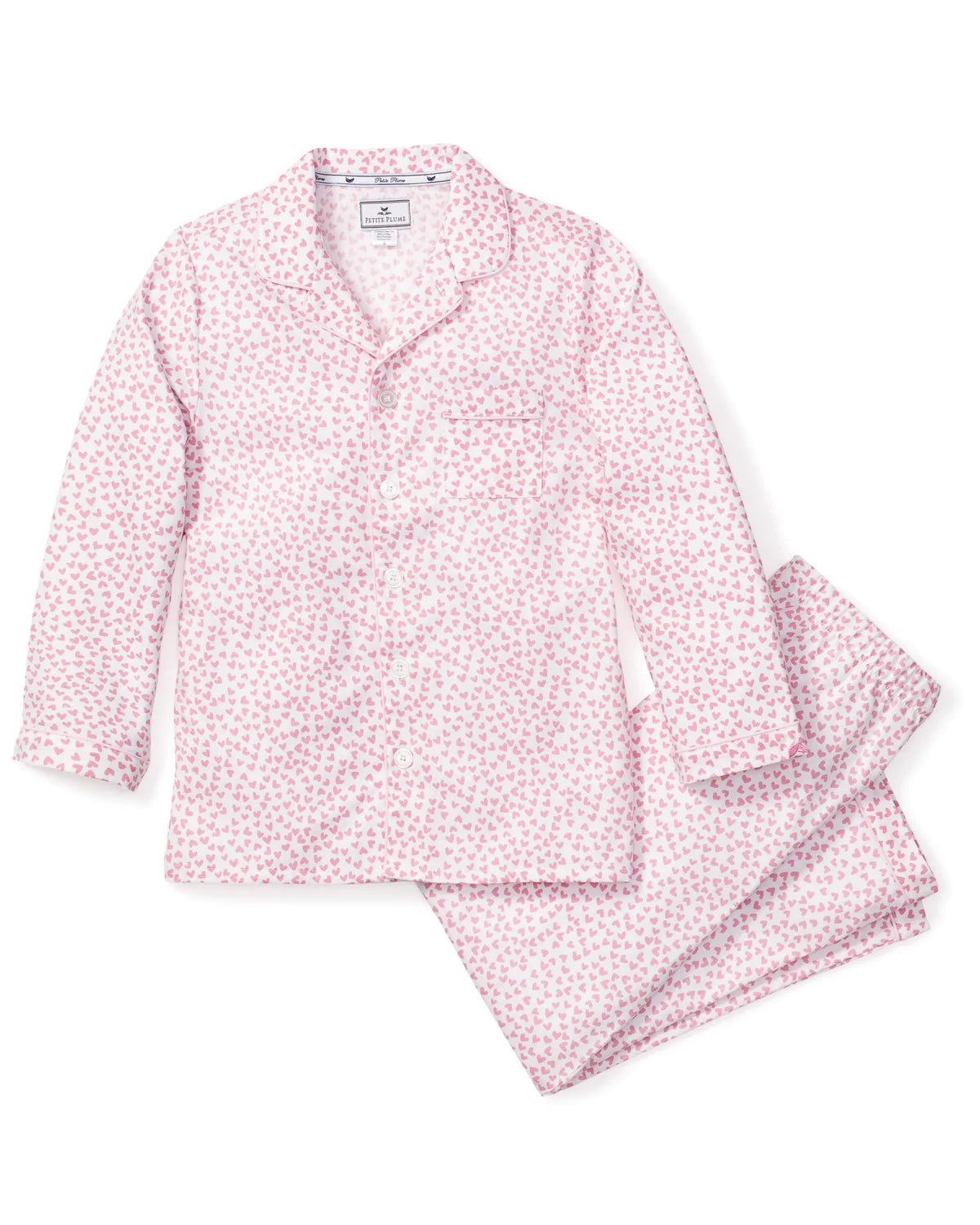 Like joyful confetti, the little pink hearts dance across the fabric as if batting their eyelashes. This classic pajama set is accented with pink piping and finished with pearl buttons.