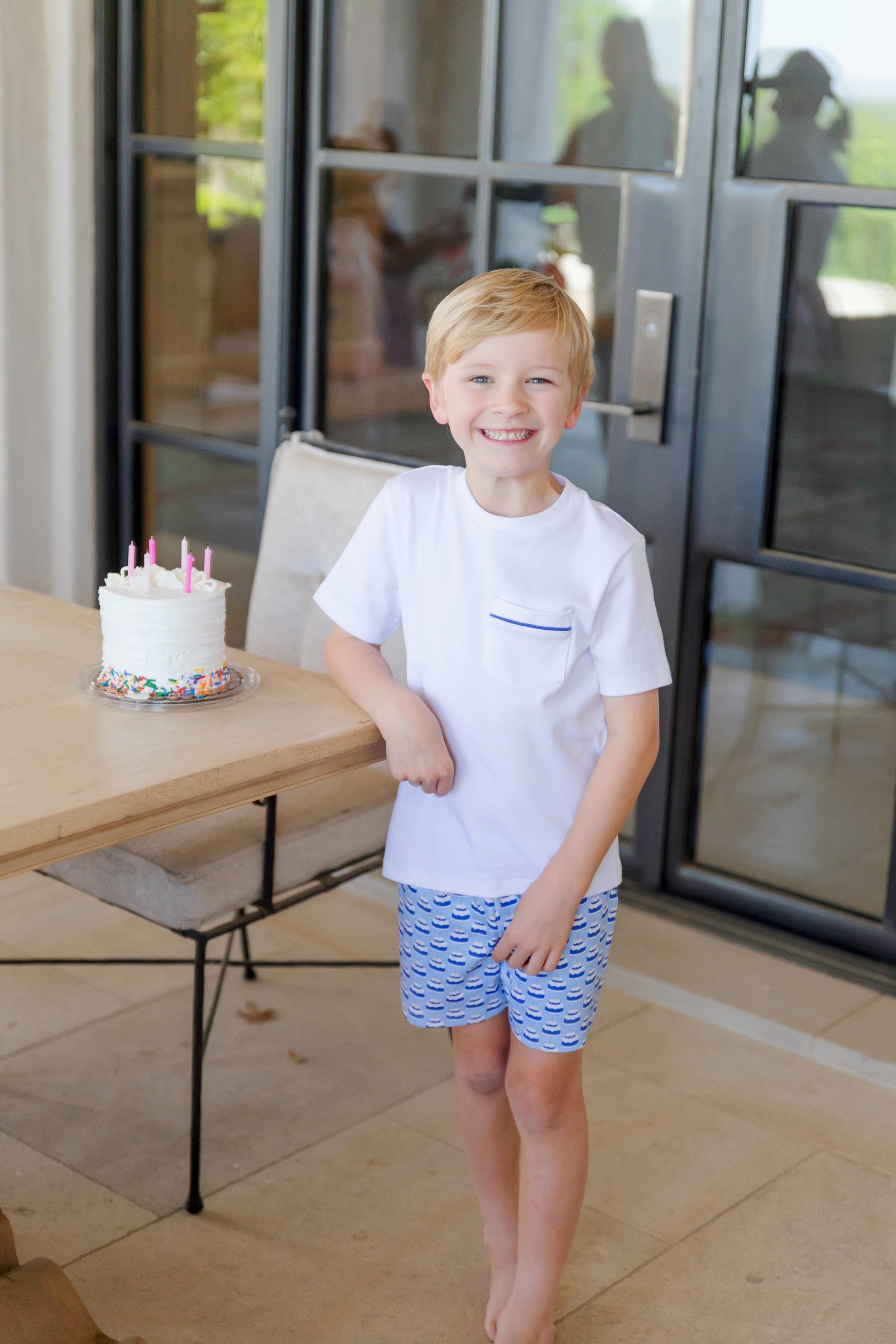 Boys' Pima Cotton Short Set. Shirt has contrast piping on the pocket. Shorts are Pima Cotton. Made from 100% Peruvian Cotton.